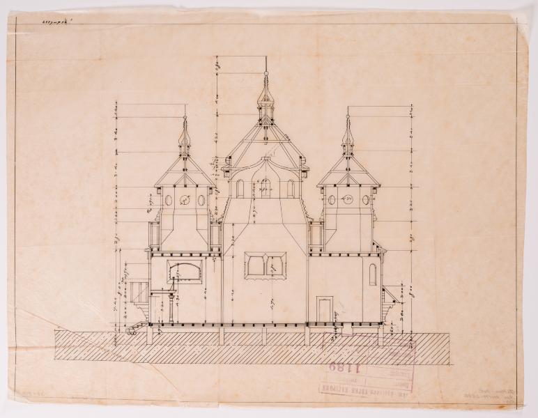 Зображений поздовжній розріз нереалізованої церкви у селі Шум’яч. Василь Слободян ідентифікує проєкт як виконаний 1927 року. Печатка з номером 1189 та сецесійна манера виконання креслення свідчить про ймовірне накреслення проєкту ще до Першої світової війни. Це тридільна трибанна дерев’яна церква, бані є восьмигранними, з шатровими дахами. Дві гранчасті захристії завершені невеликими восьмигранними вежичками. Крім головного входу з заходу до бабинця, церква має ще вхід чи два з бічних фасадів до нави (Лев Х., Слободян В., Філевич Н. 100 церков Нагірних. Частина друга: Церкви Євгена Нагірного. Львів, 2015. С. 128).