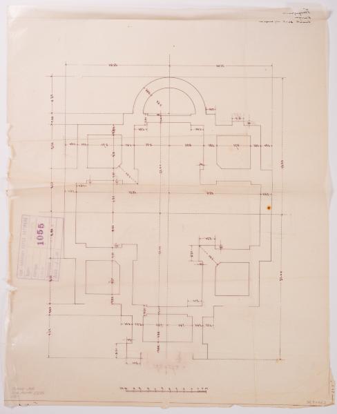 Зліва зверху примітки тушшю: «Богородчани. Калуш / нерозбірливе слово /»; на звороті поставлена печатка: «Інж.-Архітект Евген Нагірний», в якій графи «Проєкт», «Кошторис», «Копія», «Переглядав», «Львів __ / __191_» та «Архів ч.__» не заповнені. Заповнена графа «Рисунок ч. 1055».