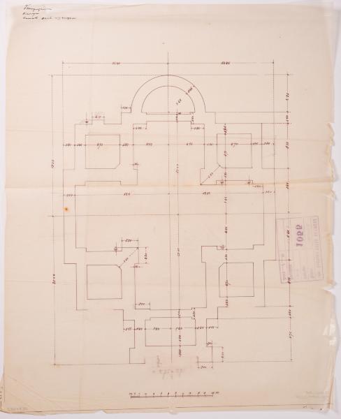 Зображений план фундаментів, що збігається із церквою авторства Василя Нагірного у Калуші. Це тринавова будівля, основний об’єм якої квадратний у плані, чотиристовпна, п’ятиверха, з трьома порталами. До квадрата прибудований прямокутний присінок та півциркульна абсида, завершена конхою. Церква була реалізована 1913 року. Сьогодні (станом на 2024 рік) присвячена св. Архистратигу Михаїлу та належить до УГКЦ (Лев Х., Слободян В., Філевич Н. 100 церков Нагірних. Частина перша: Церкви Василя Нагірного. Львів, 2013. С. 129).