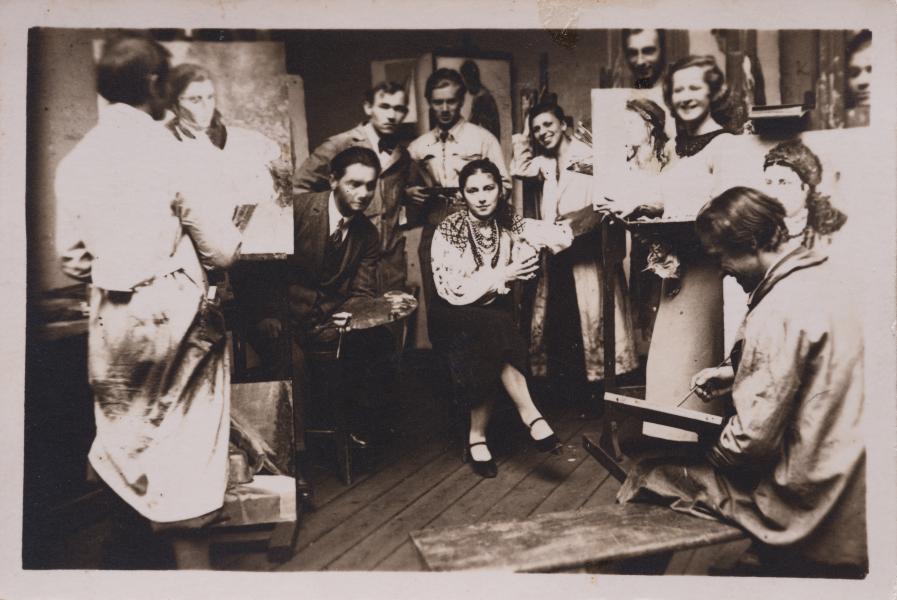 Група художників на обіді. Перерва у роботі над розписами у Краківській Греко-католицькій церкві святого Норберта